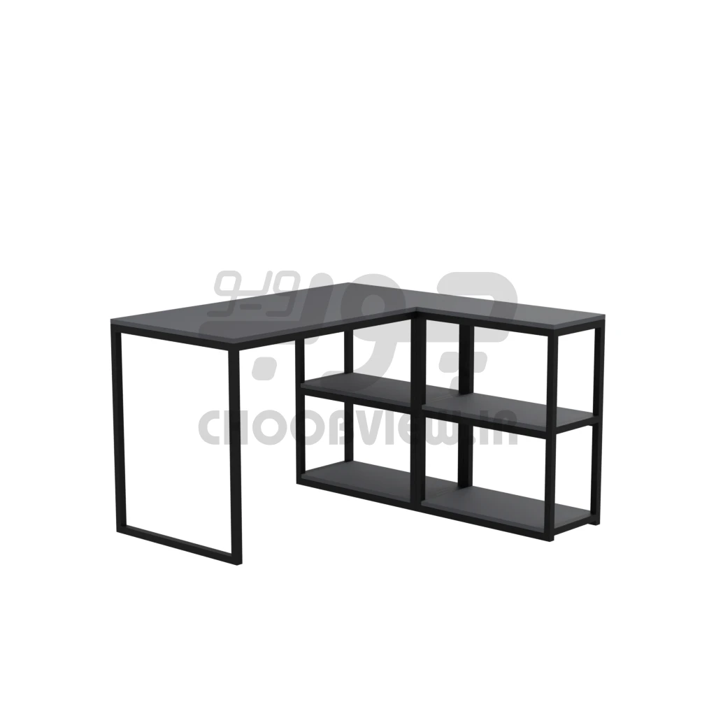 میز تحریر و کامپیوتر ال پایه فلزی 4 قفسه A009